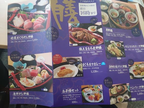膳メニューは、選りすぐりのマグロの刺身が味わえます。一番人気でかわいらしい小鉢が敷き詰められた「華御膳(2,409円)」は、私が行ったとき(12時半)には、既に売り切れていました。