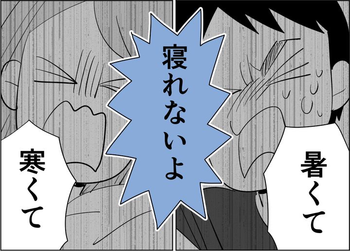 結婚して、初めて迎える夏……。寝室が別になりました。「暑がりと寒がり」そんな些細な違いが、冷戦を生むなんて夢にも思わなかったのです。暑くて寝れないヒビキと、寒くて寝れない私。暑いと言ってすぐエアコンをつけようとするヒビキ。寝たのを確認してエアコンを消すも、またつけられて……その繰り返しなのです。