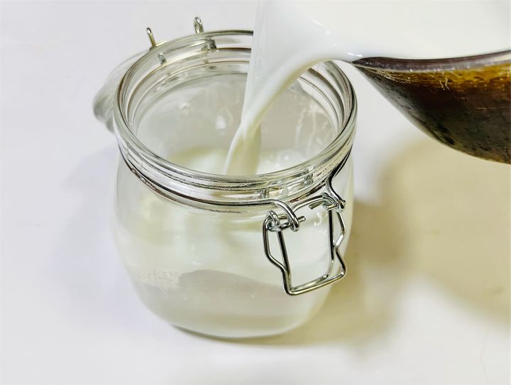 牛乳に膜がはっていれば、事前に取り除きます。容器に手が触れて雑菌が入らないよう、十分に気をつけましょう。
