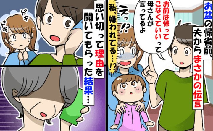 夫「嫁だけは来なくていいって」お盆帰省の連絡をすると義母が拒絶。帰省直前に判明したまさかのワケ!