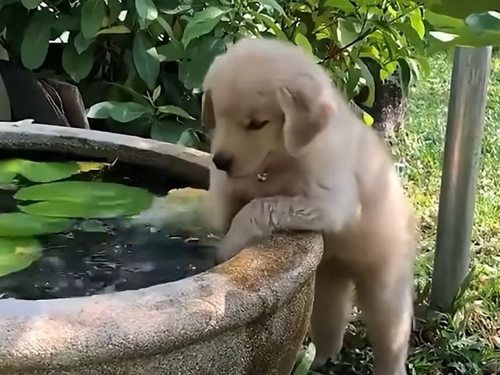 3. 「チョンチョン これはなんだ?」水と初対面の子犬さんが可愛すぎた