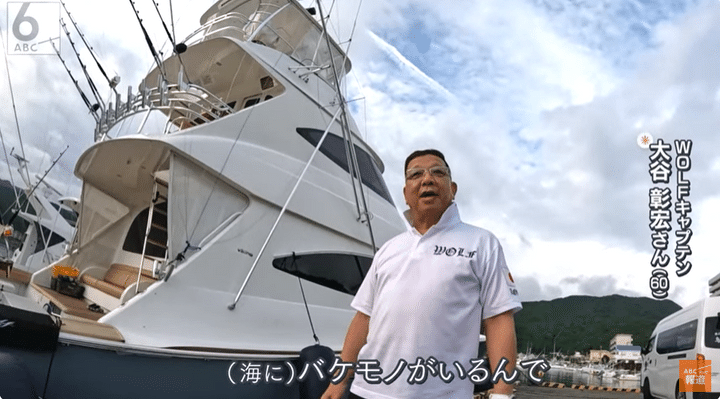 大会初日、早朝から動きだす各チーム。兵庫・西宮市から、総額13億円という豪華クルーザーで参加したのは、昨年の覇者「チーム WOLF」です。キャプテンの大谷彰宏さん(60)は、2006年に326kgのクロカジキを釣り上げ、数年前まで日本記録を持っていたカジキ界のレジェンド。不動産や人材派遣、ITなど6つの会社を一代で設立したバイタリティーあふれる男性です。