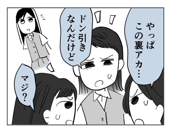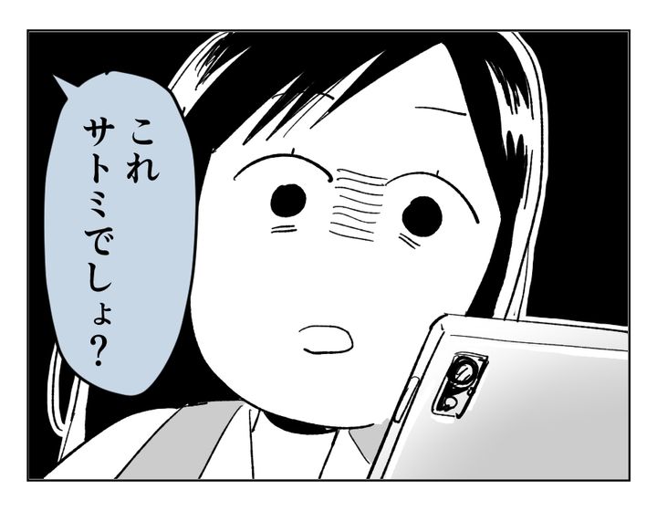 サトミちゃんの友達がなにやらコソコソと話している様子。サトミちゃんがいつも通り話しかけると、なにやら怒ったような呆れたような表情の友達に、スマホの画面を見せられたのです。そこにはサトミちゃんを装う人物の書き込みが……。もちろんサトミちゃん本人ではないはずです。