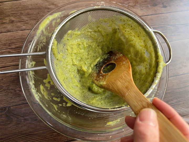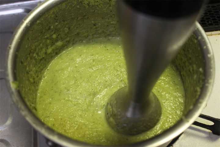 5. 粗熱を取り、ミキサーまたはブレンダーでなめらかになるまで撹拌します。今回はブレンダーを使いました。