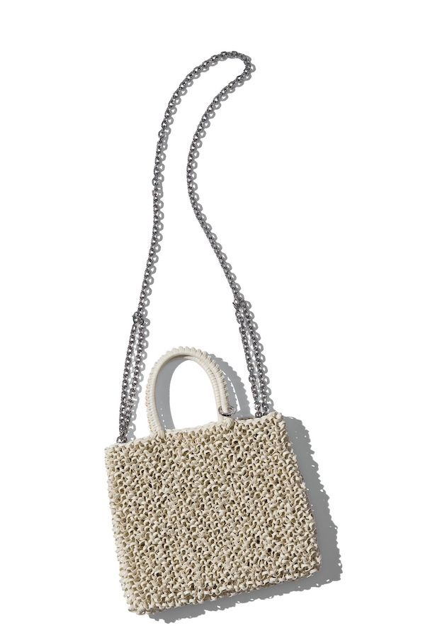 ミニアトゥーラ=キラキラの印象が強いけれど、あえてのマット素材でカジュアルルックをほんのりモードな仕上がりに。ショルダーチェーン付きなので荷物が増えても安心。