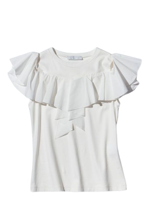 3. 大人の肌見せは2wayトップスから!オフショルにもなる【フリル袖カットソー】