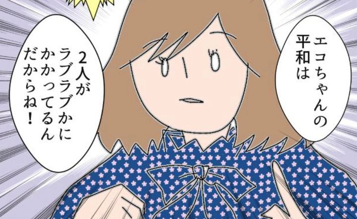 結果的にS太郎さんとCちゃんがうまくいっていることにイラッとするエコさんでしたが、Aちゃんは、「これでいいのよ!あんたの平和はふたりがラブラブかにかかっている!」と言い放ちました。