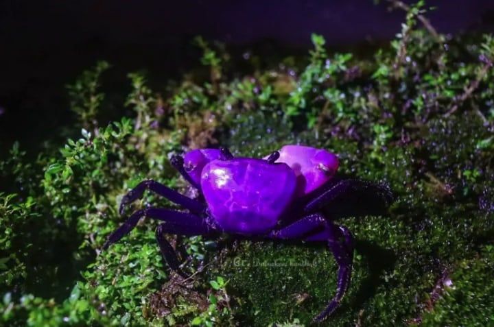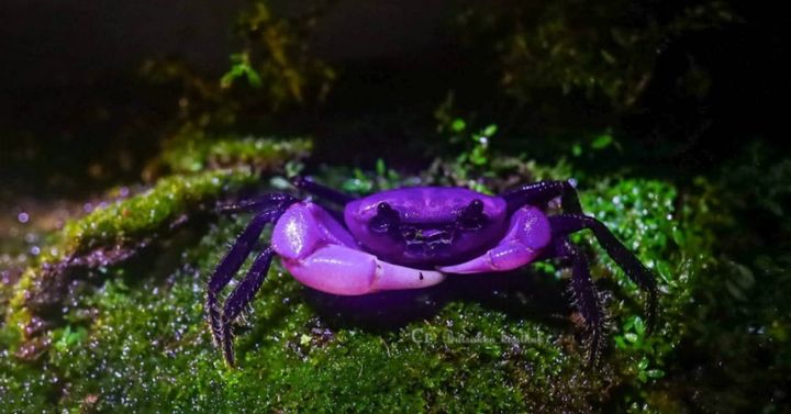 タイの深い森に、まるで宝石のように輝く紫色のカニが見つかりました。