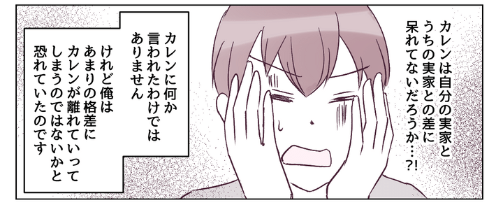 カレンは感情表現が豊かなタイプではありませんが、裏表がなく素直な人。いつも味方でいてくれて、俺にとってなくてはならない大切な存在です。万一そんなカレンを失うことになったら耐えられません。もしカレンが俺の実家に呆れていたらどうしよう……そう考えると俺はいたたまれなかったのでした。