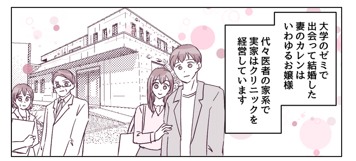 大学のゼミで知り合ったカレンとは、同級生としてフラットな関係を築いてきました。しかし結婚式を挙げる頃になると、俺はそこに想像もしなかったような格差があることを思い知ったのです。カレンの育った環境を自分の実家と比較して、俺はすっかり引け目を感じるようになってしまいました。