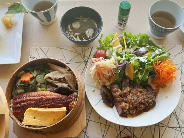 私はうなぎ、夫は国産牛とごぼうのしぐれ煮のわっぱ飯を選びました。