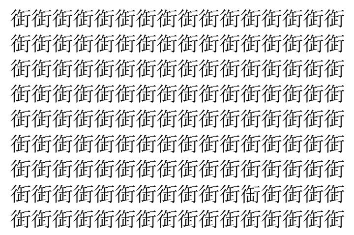 【脳トレ】「衘」の中に紛れて1つ違う文字がある!?あなたは何秒で探し出せるかな??【違う文字を探せ!】
