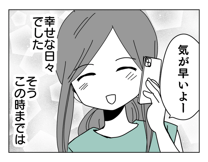幸せな結婚後すぐのおめでた。キョウカさんの人生は順調に進みます。実母さんもミカコさんも、皆心から喜んでくれました。今まで「お姉ちゃん」として生きてきたキョウカさんは、今度は「お母さん」として生きていきます。大切にしてきた家族に見守られ、元気な赤ちゃんを産んで温かい家庭を築いてくださいね。しかし「幸せな日々でした」って……え? 「でした」ってことは過去形なの……?