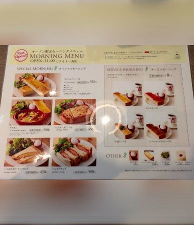モーニングメニューの価格は、お好きなモーニングにドリンクの料金を足した金額になります。