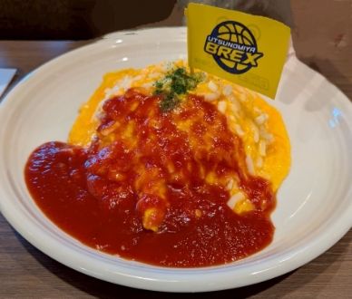 チーズオムライスのトマトソースを注文したら、宇都宮ブレックスの旗が立てられていました!