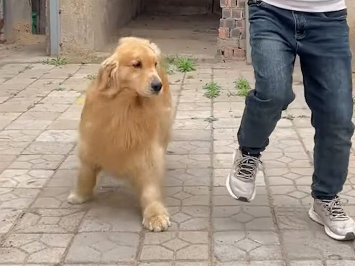 3. 見て覚えたの? 飼い主の仕草を完コピするゴールデンさんの集中力がすごい