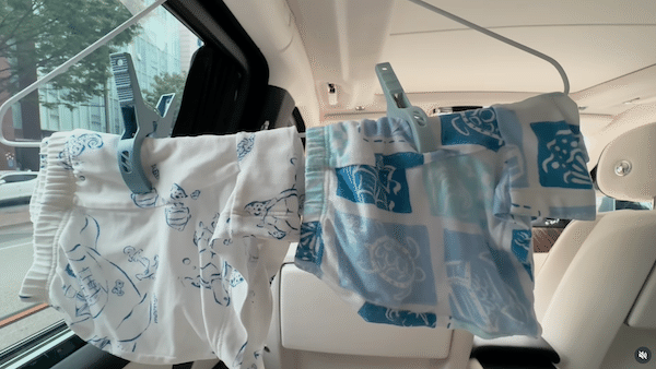 ソン・イェジンは8月5日、自身のセカンドインスタグラムに短い動画を公開。車の後部座席にかけられたハンガーに、まるで洗濯物のように吊るされた幼児用パンツ2枚が揺れる様子が映っていた。