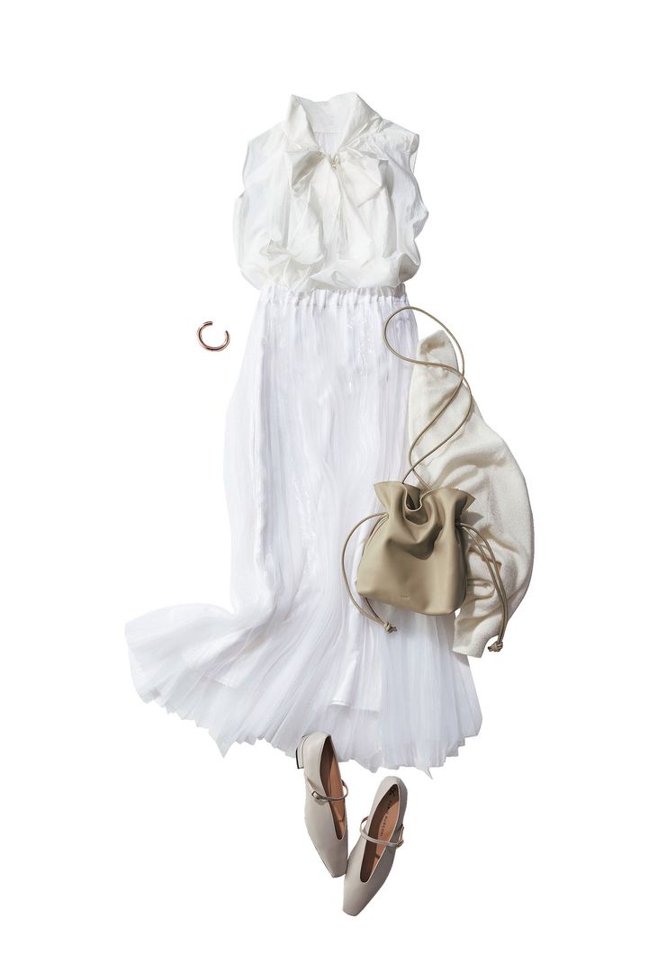 擁護者(ISFJ)は白のオーガンジースカートでコーデに柔らかさを