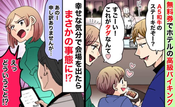 「A5和牛がタダなんて♡」無料券をもらい高級バイキングを満喫。帰ろうとすると店員に呼び止められ…