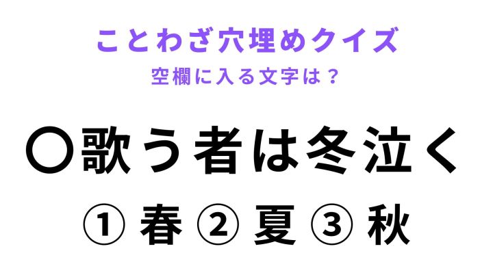 ことわざ「〇歌う者は冬泣く」には、なんの文字が入る?