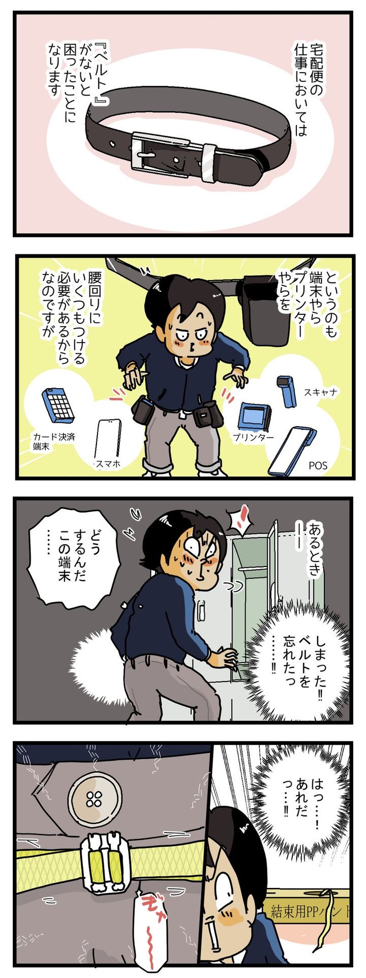 宅配員の必需品だというベルト。ある日、ゆきたこーすけさんはベルトを忘れてしまったそうで…?