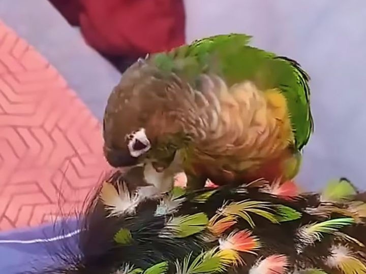 3. スタイリストはオウムさん!? 色とりどりの羽でヘアアレンジする光景にほっこり