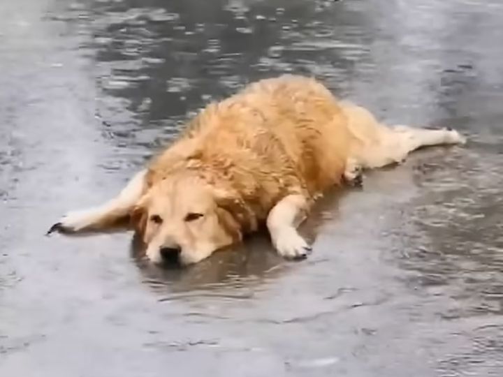 雨が降ってもへっちゃら! 水たまりでごきげんになる犬さん