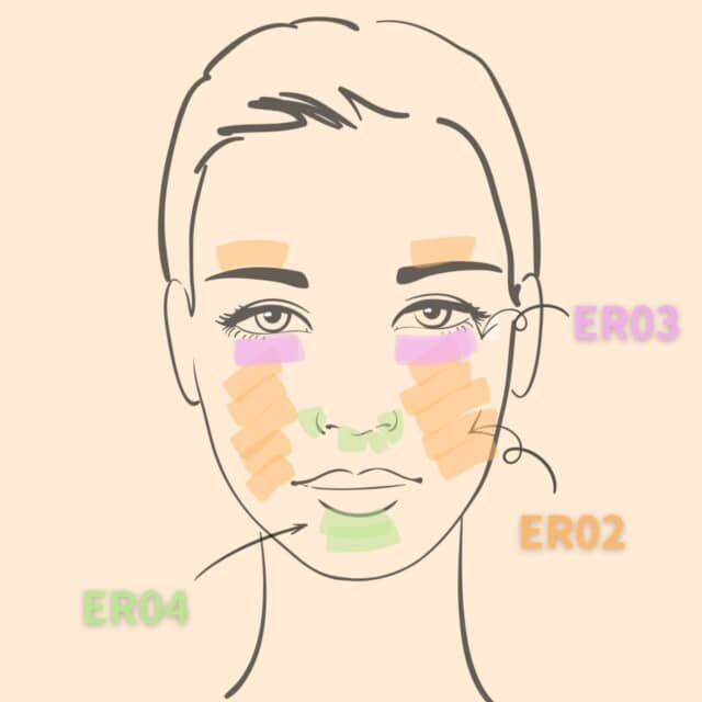 ER02:シミやくすみカバーに。肌トーンに近く、ファンデ代わりにも使える万能色。