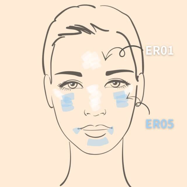 ER01:鼻筋・目周りに入れて、ハイライトのような立体感を演出。
