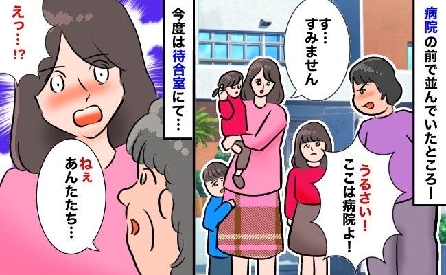 子どもたちの姿を見て、周りの人も「かわいいねえ」「元気だねえ」「仲良しでいいね」と声をかけてくれていたのですが……並んでいた女性が突然、「うるさい! ここは病院なのよ!」と子どもたちに向かって怒鳴ったのです。