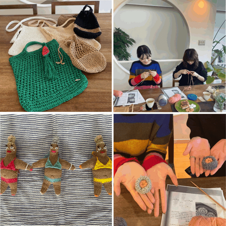 「此処あそび」東川則子さん主催の自宅サロンにて楽しく編み編み