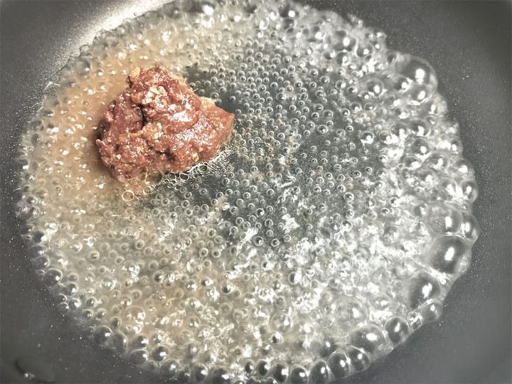 1.フライパンに日本酒を入れて強火にかけ、アルコールを飛ばします。