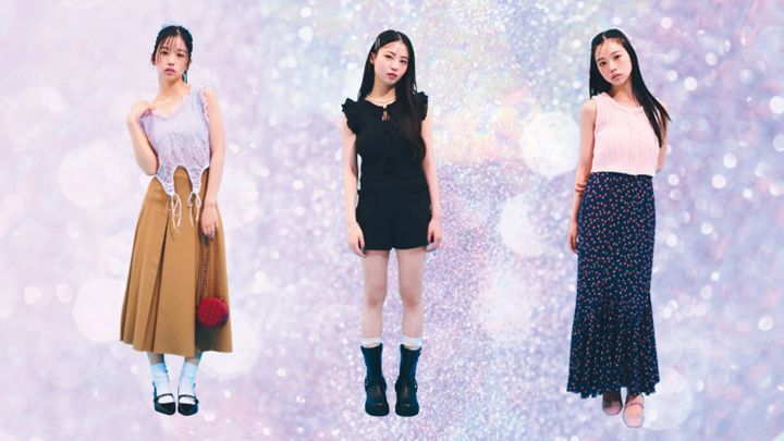「帽子やフリルトップスで、上半身にボリュームを持ってくるスタイリングに。低身長さんや骨格ウェーブのコにおすすめです」