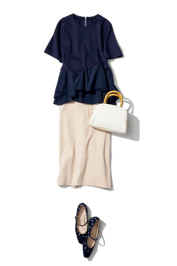 3. シンプルにアプデ感が出せる!ベーシックトップス×ペンシルスカートの最新通勤コーデ2選