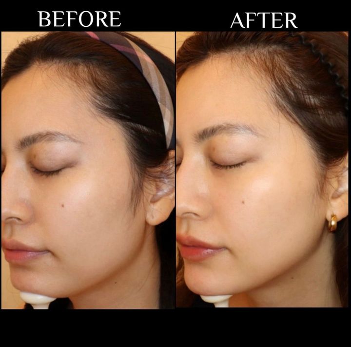 気になっていた左側のフェイスラインが出にくいことを伝え、今回も左側に多めに注入してもらいました。施術はパーソナライズが肝! 先生に全てお任せするのではなく、自分の悩みや希望をしっかり伝えることも大切です。