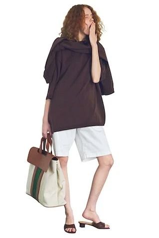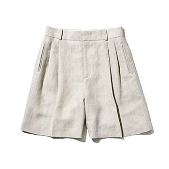 ショートパンツも「メンズ」というのも選択肢のひとつ。ラフでラクでも、配色で品のいい印象作り。なかでもメンズライクが色濃く映るラフなパンツだから、クリーンな白の力を借りたいところ。さらにビターなブラウンとの相乗効果で「基本カジュアル、結果キレイ」に落ち着く。