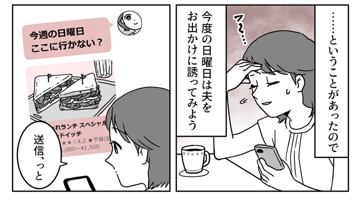 前回、夫が一緒に行きたいと言うのを断ってしまったため、今回は夫を誘おうと思ったら「考え中」の返信が。それっていつまで考えるのでしょうか……? 私は夫が考え終わるまで待たなくてはいけませんか?