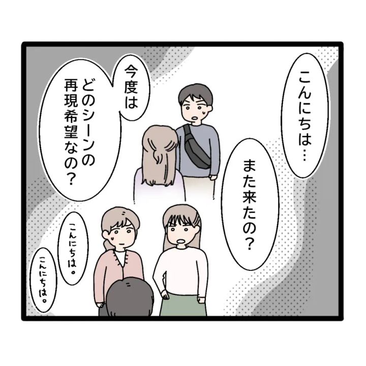 その後も、「こんにちは・・」とやって来た伸介に、「また来たの?今度はどのシーンの再現希望なの?」と詰め寄るお姉ちゃん。それが何度も繰り返されました。