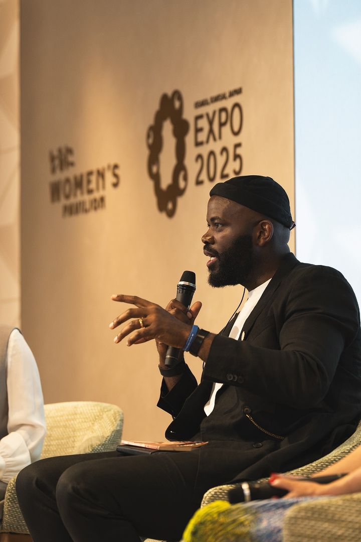 二つ目に参加した対談のテーマは「人間関係の本質:つながりがもたらす永続的な価値とは」でした。ウーマンズ パビリオン内の展示 「YOUR HAND」に登場する作家のJJ・ボラ氏による詩の朗読で始まり、JJ・ボラ氏と「THREE WOMEN」のショートフィルムを手掛けた映画監督の河瀨直美氏が、 その半生と創作活動の中で、いかに人とのつながりを培ってきたのかを振り返りました。社会での孤独感は日本に限らず世界でも問題視されています。イギリスでは世界で初めて孤立担当大臣を設置、ジンバブエではフレンドシップベンチを設け、対面で話すことの大切さを推奨するなど、社会での孤独感が深まるにつれ、リアルな人と人とのつながりの必要性がこれまで以上に切実なものになってきているということを痛感したセッションでした。