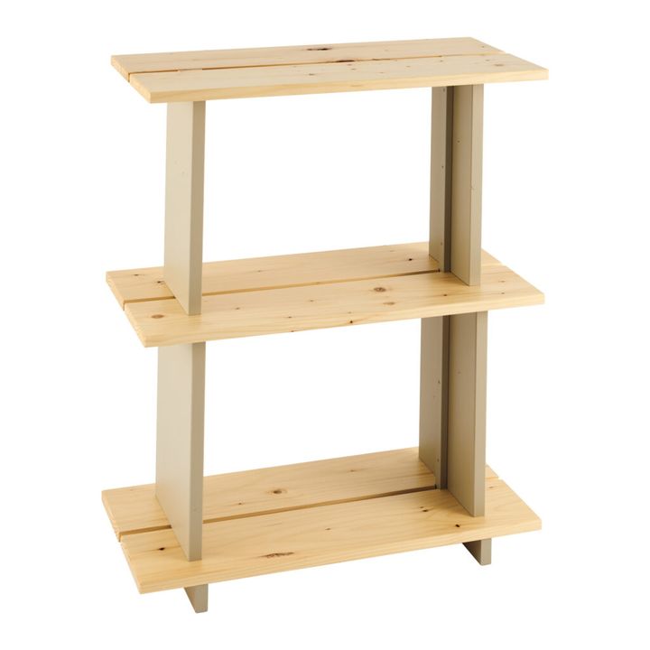 〈イデー〉が取り組むアップサイクルプロジェクトから、日本の伝統的な道具に着想を得た新コレクションがお目見え。着物を掛けるために使う、鳥居のような形をした家具”衣桁”の構造をヒントにしたシェルフは、シンプルなつくりで空間に合わせやすい。素材には国産トド松の無垢材を使い、節を残したデザインに個性が光る。