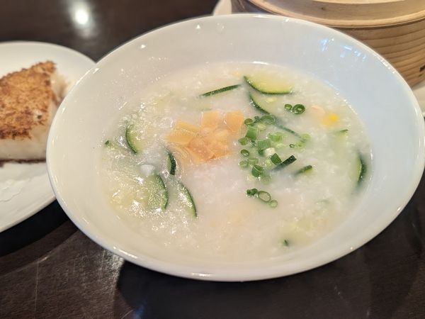 トロットロのおかゆにズッキーニのしゃきしゃき食感とトウモロコシの甘みが絶妙。