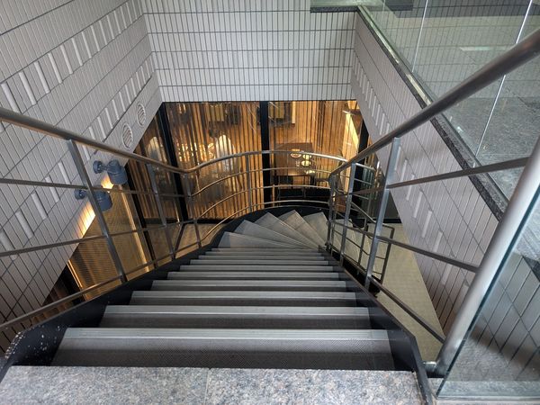 大通公園の北側にあるレンガの壁のビル。お店は地下1階にありますよ。