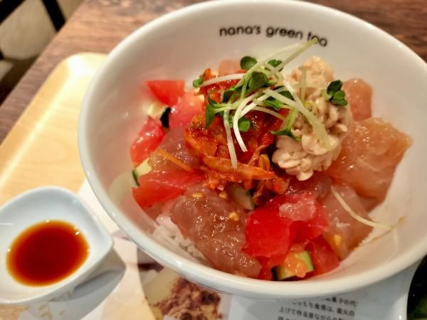 まずひとくち。「…っ!!」 もち鮪の食感が想像以上! もちっとした舌触りにトロッとした旨み。 これはただの“まぐろ”ではない! という驚きからスタートです(笑) 納豆がキムチや夏野菜と絶妙に絡み、さっぱり&ピリ辛で後味も爽やか。