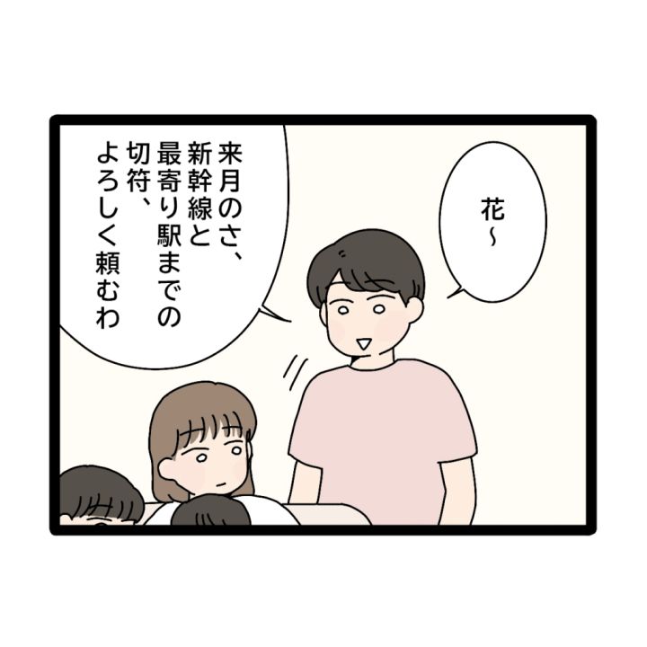 長期休みが近づいてきたある日、夫に新幹線と最寄り駅までの切符の手配を頼まれました。来月か・・・。「よろしく頼むわ」で済ませる夫。少しモヤります。