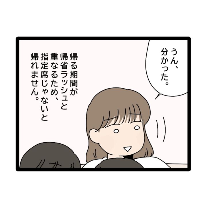 「うん、分かった」といつものように答えた私。帰る期間がいつも帰省ラッシュと重なるので、早めに指定席を取っておかなくては帰れなくなってしまいます。