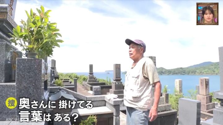 一人暮らしも21年。畑に植えたシキミの枝葉を毎日妻の墓に備えるのが日課に。男性は妻の墓に、「家族仲良くやってるよ」と報告する。
