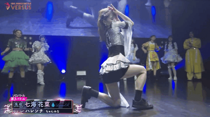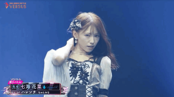 そんな刺激的な楽曲『ハレンチ』で、女性アイドルたちが1対1のダンスバトル! 対決したのは、水をコンセプトとした6人組アイドルグループ・LarmeRの七海花菜と、初の日本武道館公演を終えたスターダストプロモーション所属の9人組アイドルグループ・いぎなり東北産の安杜羽加だ。