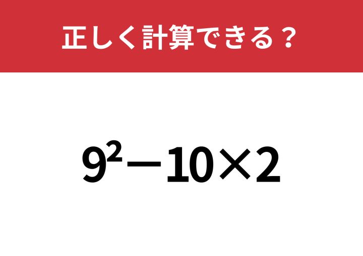 あなたの実力試してみて!「9^2−10×2」正しく計算できる?