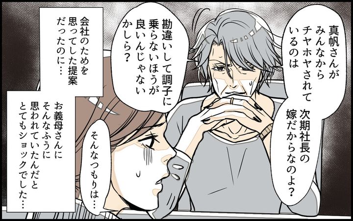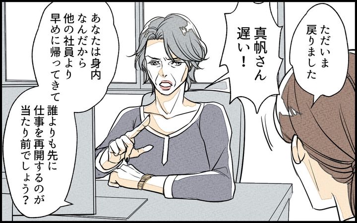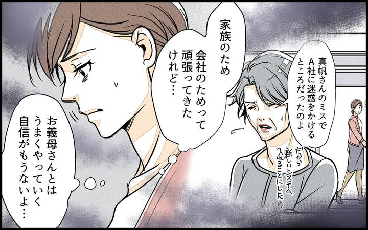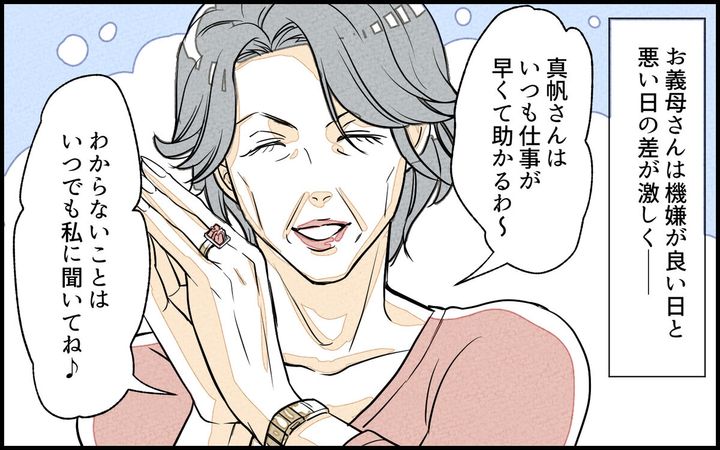 結婚して、子どもが生まれて1年経った頃、夫・勇太の実家が経営する会社に勤めることになった真帆。仕事は難しくなく社員の人たちとも仲良くなりましたが、一緒に働く義母との関係性にだんだん悩むようになり…