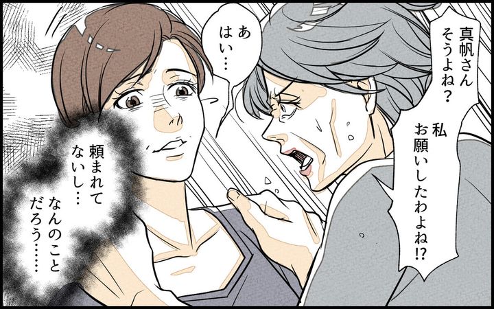 「マニュアルがあるのでそちらを見てください」と真帆が返すと、「直接説明してよ」と義母。